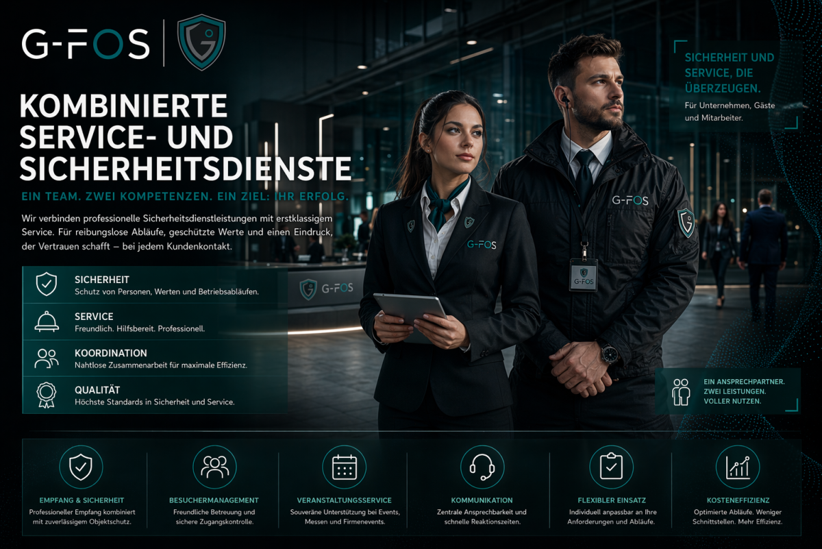 Unsere kombinierten Service- und Sicherheitsdienste bieten Ihnen eine ganzheitliche Lösung für den professionellen Betrieb und Schutz Ihrer Objekte. Wir verbinden klassische Sicherheitsdienstleistungen mit unterstützenden Serviceleistungen – effizient, wirtschaftlich und optimal aufeinander abgestimmt.